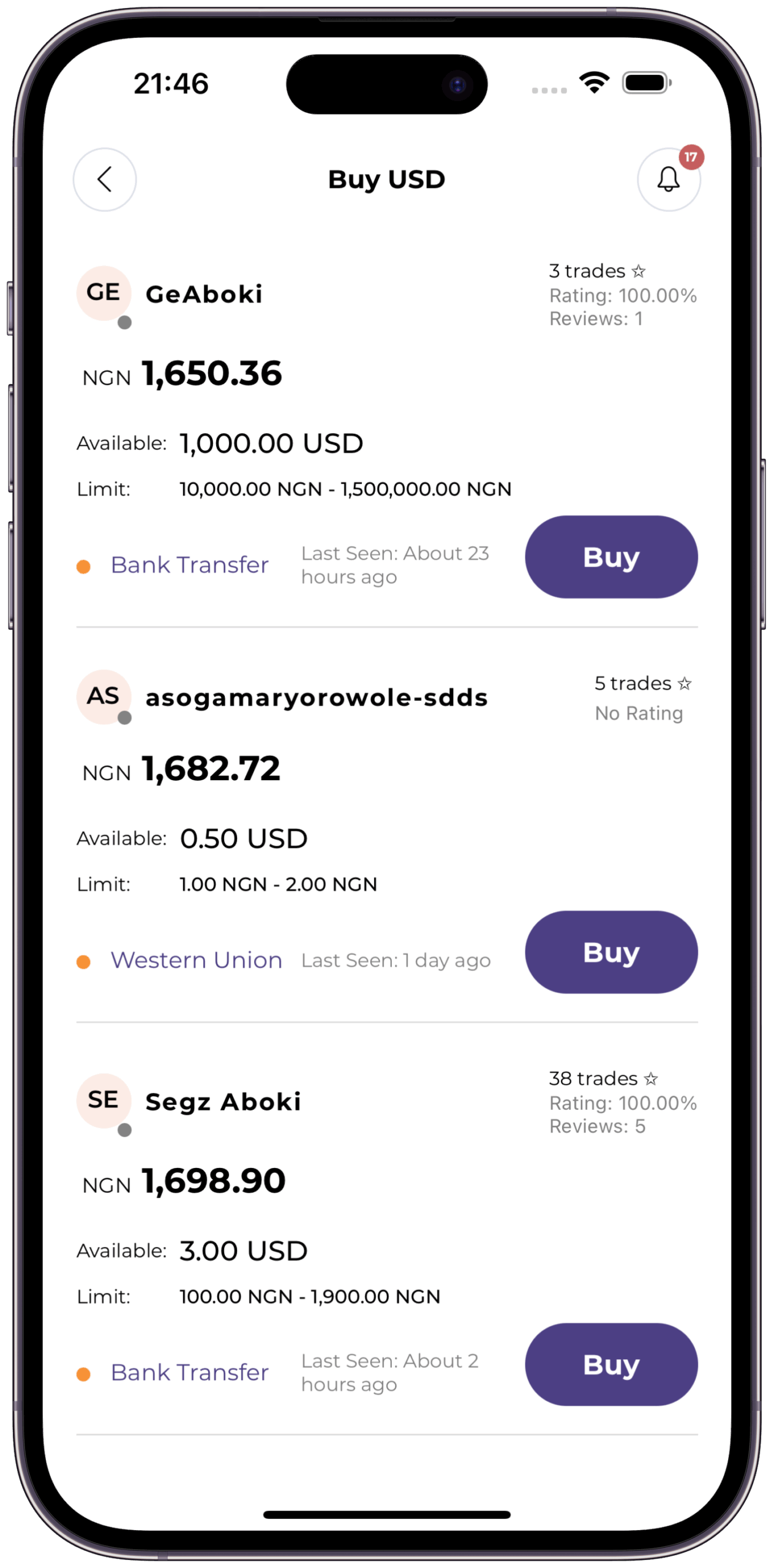 P2P trades connect a trader and a buyer. For instance if a person wants to buy USDT, The platform lists traders’ offers and their terms, a buyer determines how much he needs and chooses the trader he is most comfortable with.